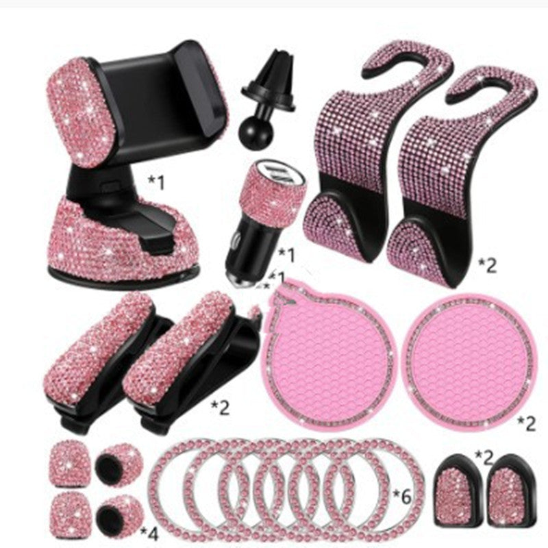 Tato kompletní “Bling Diamond” sada změní interiér auta v krásné a osobní místo, kde se budeš cítit žensky, upraveně a sebevědomě.