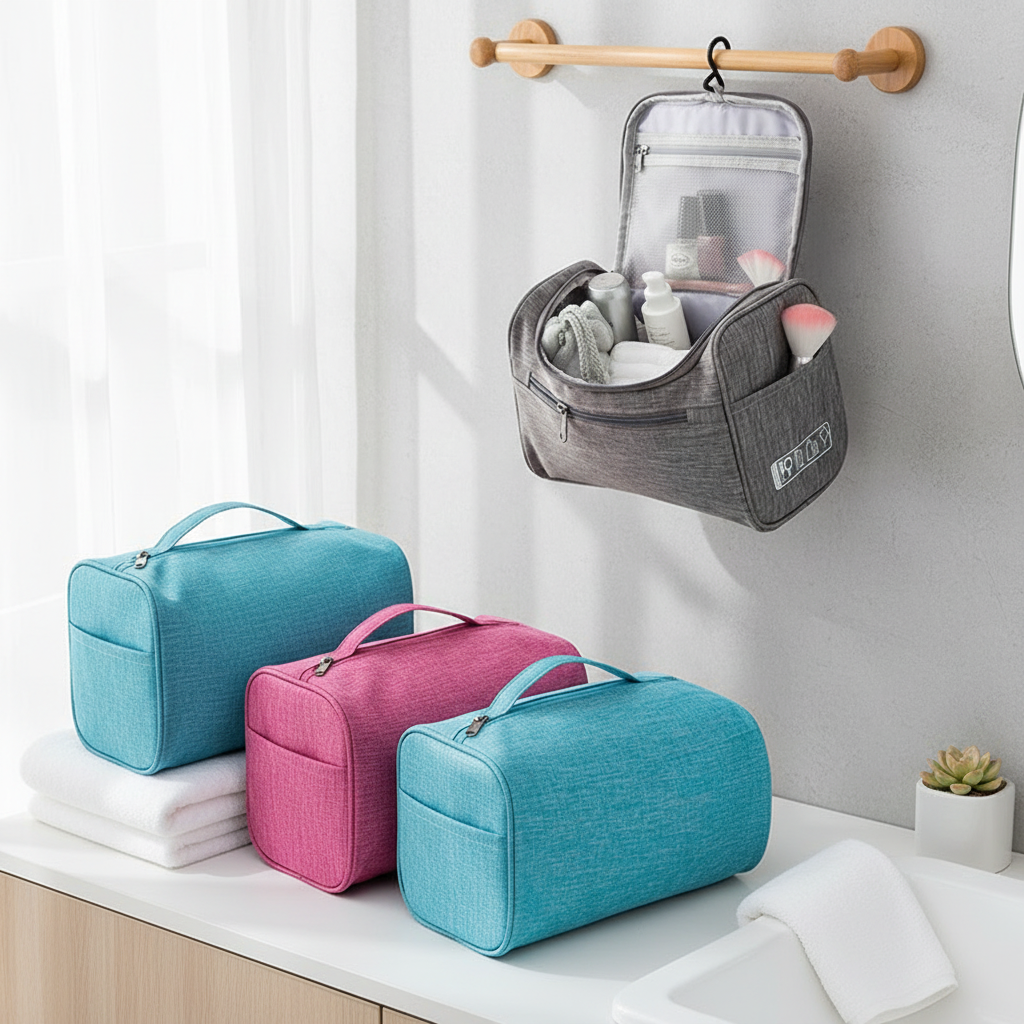 Praktický cestovní kosmetický organizér, který pojme vše, co potřebuješ na cesty — od make-upu, pleťové péče až po hygienické potřeby. Díky vestavěnému háčku můžeš tašku pohodlně zavěsit do koupelny, auta nebo na dveře hotelového pokoje a mít všechny věci přehledně uspořádané a snadno dostupné.